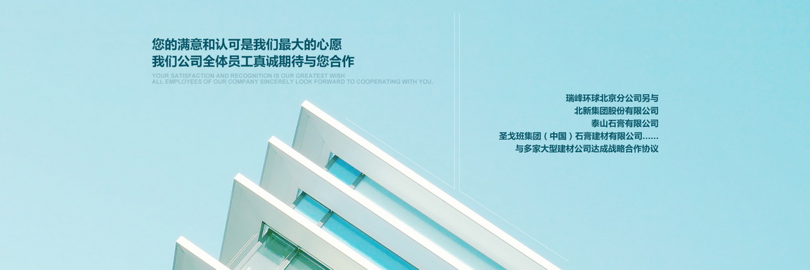 北京市朝陽(yáng)區(qū)金盞鄉(xiāng)科鷹科技園內(nèi),是北京******的建材營(yíng)銷(xiāo)商之一,專(zhuān)業(yè)銷(xiāo)售各種高檔建筑材料的現(xiàn)代化公司.本公司已與多家大型建材廠家達(dá)成合作協(xié)議:泰山石膏建材有限公司,北新建材有限公司,濱州綠邦有限公司,河北金秋有限公司,北京金隅砂漿有限公司,歐文斯科寧(中國(guó))投資有限公司,湯姆節(jié)能建材(北京)有限公司等.更與國(guó)外泰國(guó)工廠生產(chǎn)的:美巖板,清水板,木絲水泥板,木紋木絲板……簽訂了國(guó)內(nèi)經(jīng)營(yíng)權(quán);與德國(guó)高新企業(yè)超薄石材簽屬超薄巖板國(guó)內(nèi)代理權(quán)(超薄巖板,可彎曲石材,厚度1.5~2mm左右)與臺(tái)灣合作研發(fā)礦石板(以最好的效果提現(xiàn)礦石的效果).好的工程絕對(duì)少不了一個(gè)好的建筑材料,瑞峰環(huán)球攜手各大品牌為您的工程保駕護(hù)航.